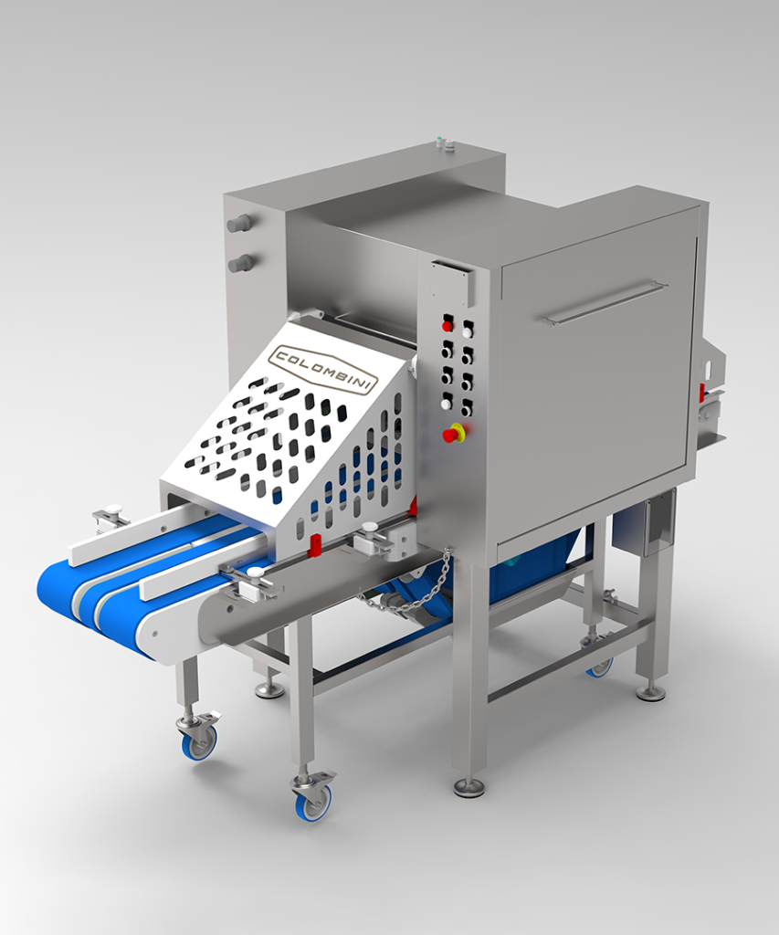 La LRC Macchina da taglio porck loin ribs, prodotta dalla Colombini srl, rappresenta una soluzione altamente efficiente per il taglio continuo e razionalizzato di grandi quantità di costole di lombo suino. Questa macchina è progettata per ottimizzare l’intero processo produttivo, minimizzando gli spostamenti di materiale e i tempi morti, e favorendo una specializzazione delle mansioni dei lavoratori che, grazie a un sistema di movimento semplice e sicuro, richiede un addestramento minimo.